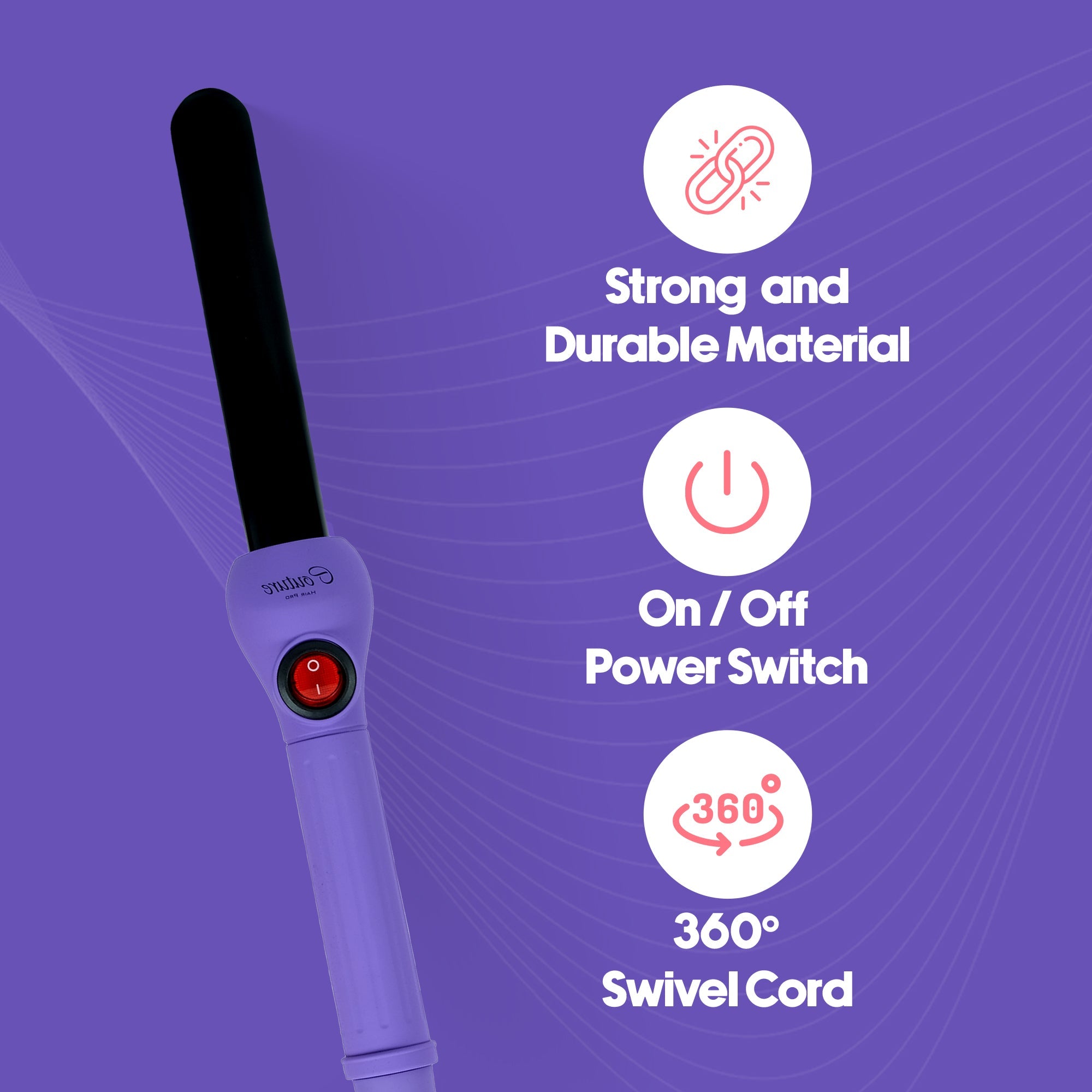 💜 25 MM Barrel – Ideal size for natural-looking curls and soft waves.