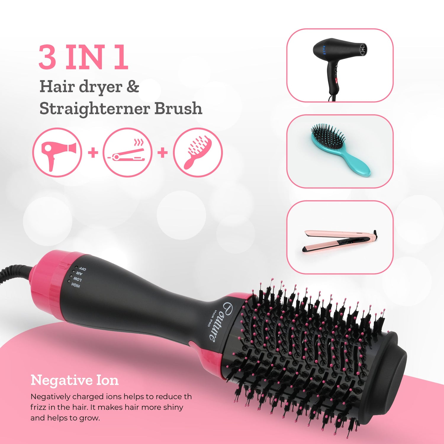 Couture Hair Pro Hot Air Brush - 3 in 1 Hair Straightening Brush, Volumizer & Dryer - Pink