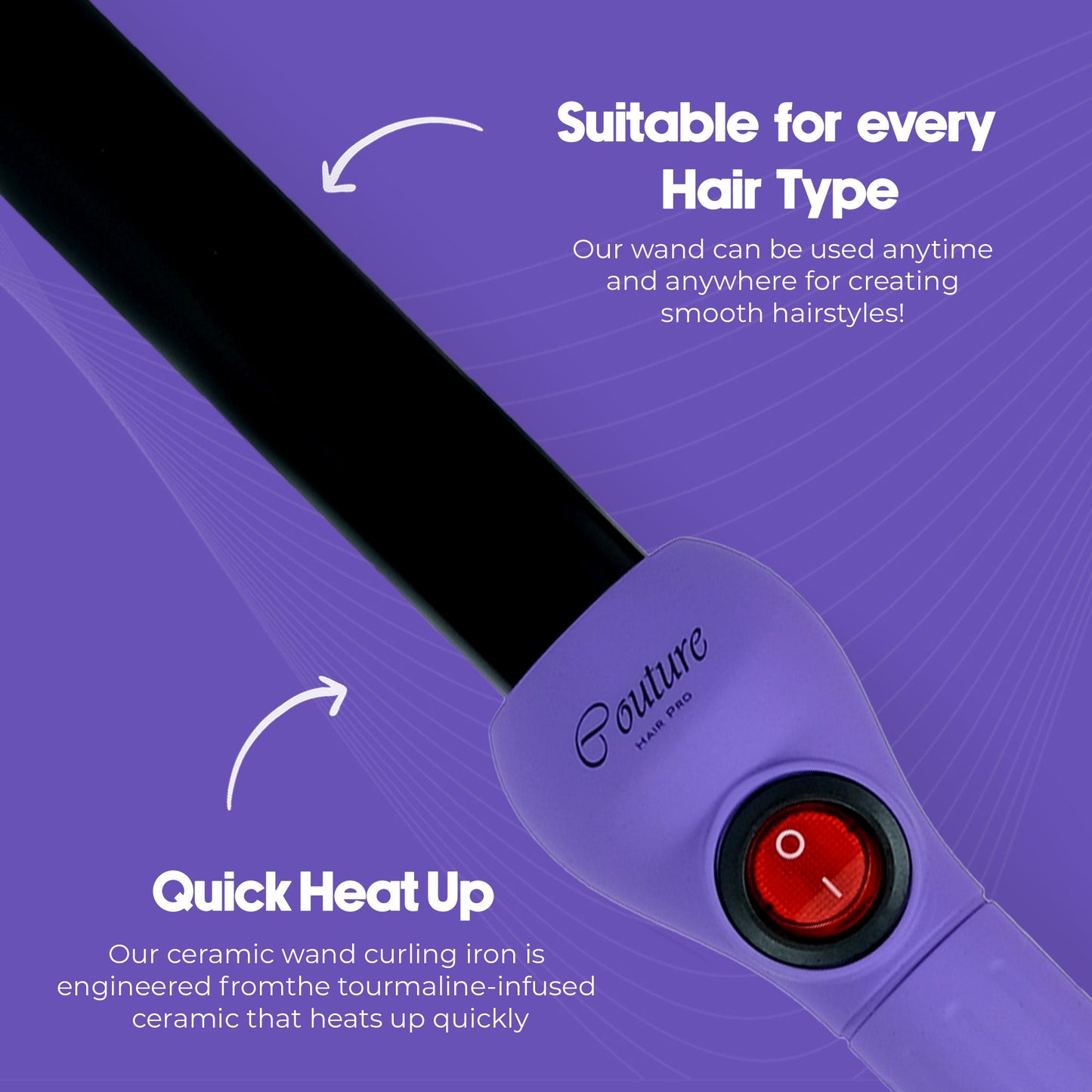 💜 Ceramic Tourmaline Barrel – Even heat distribution with frizz protection.