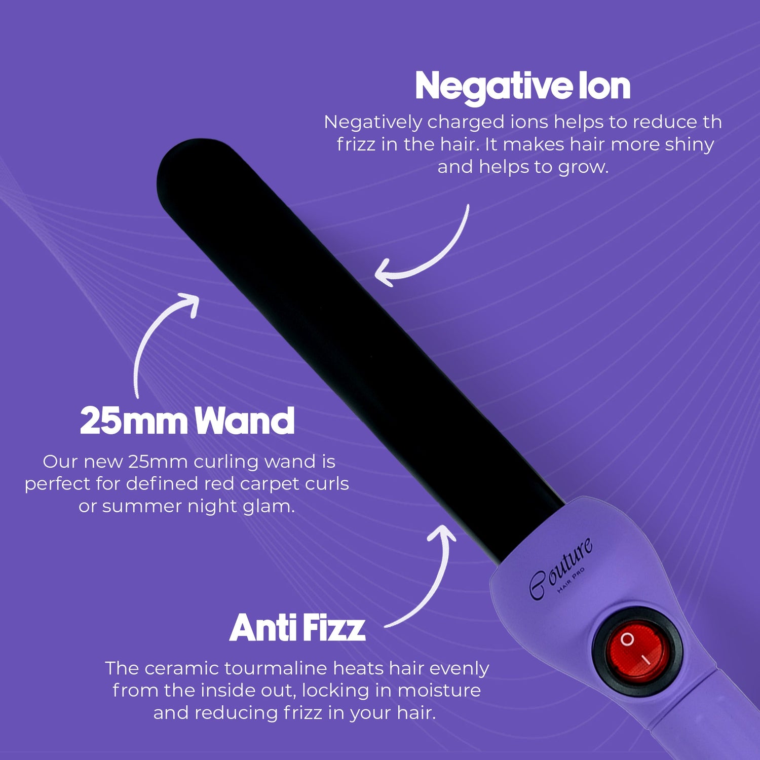 💜 25 MM Barrel – Ideal size for natural-looking curls and soft waves.
