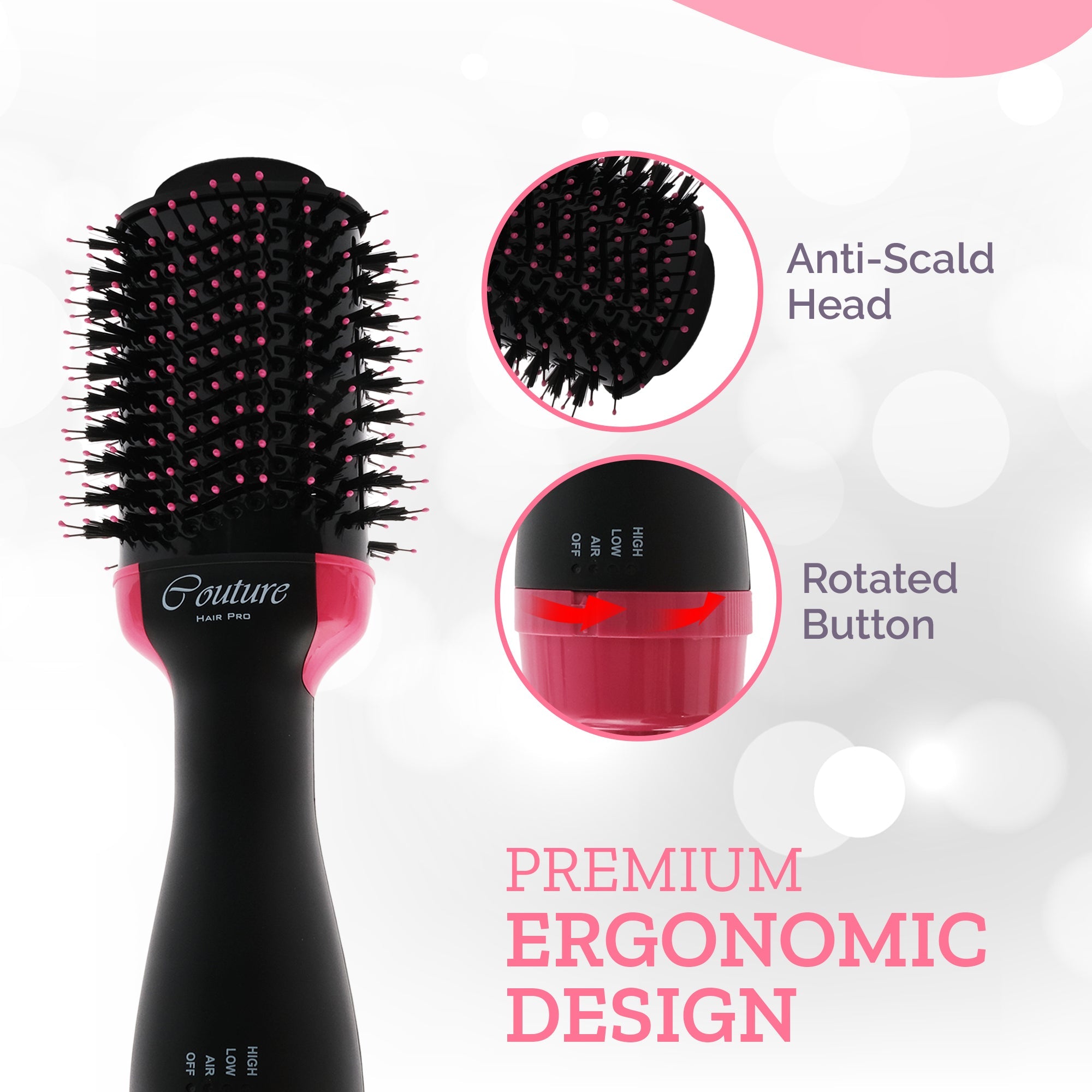 Couture Hair Pro Hot Air Brush - 3 in 1 Hair Straightening Brush, Volumizer & Dryer - Pink