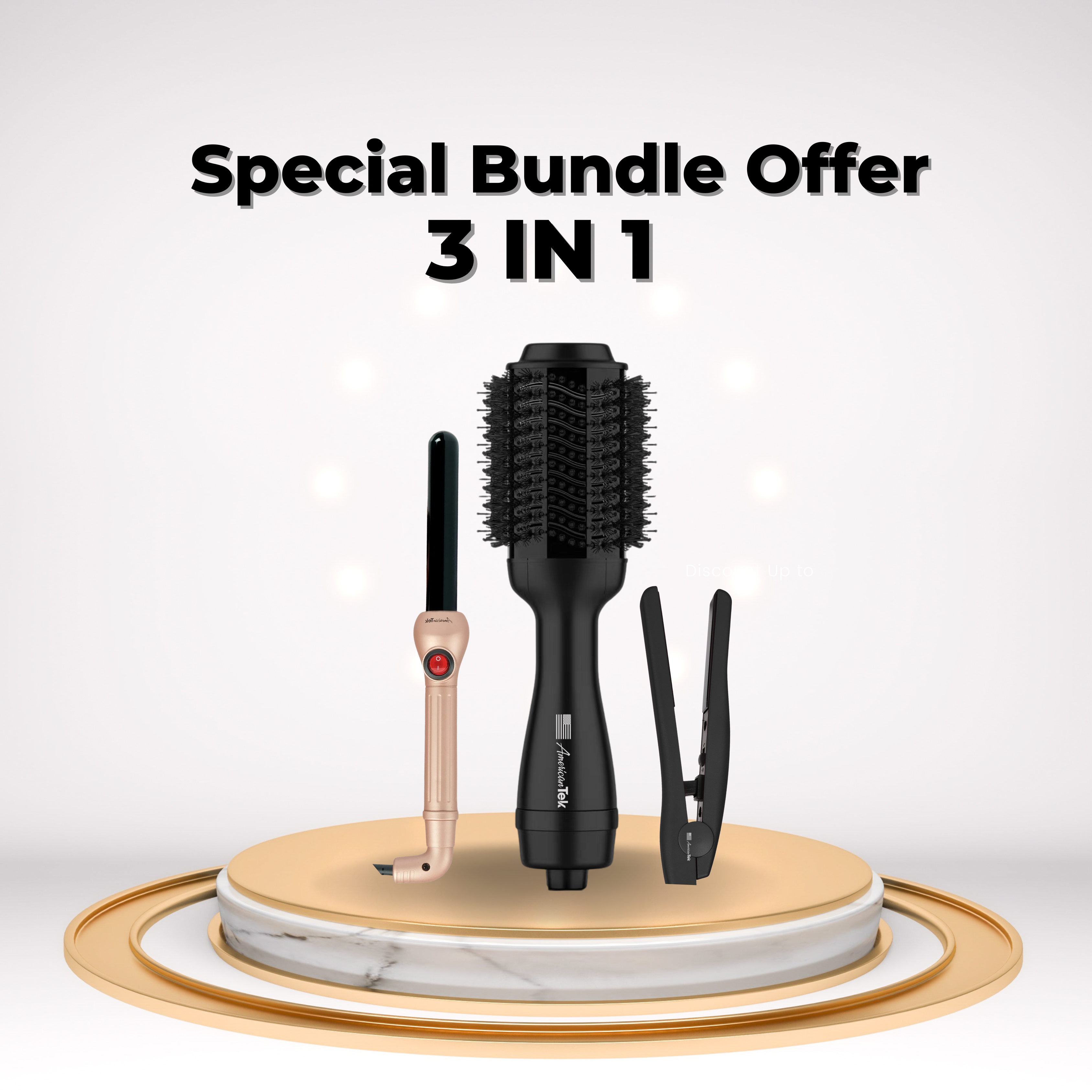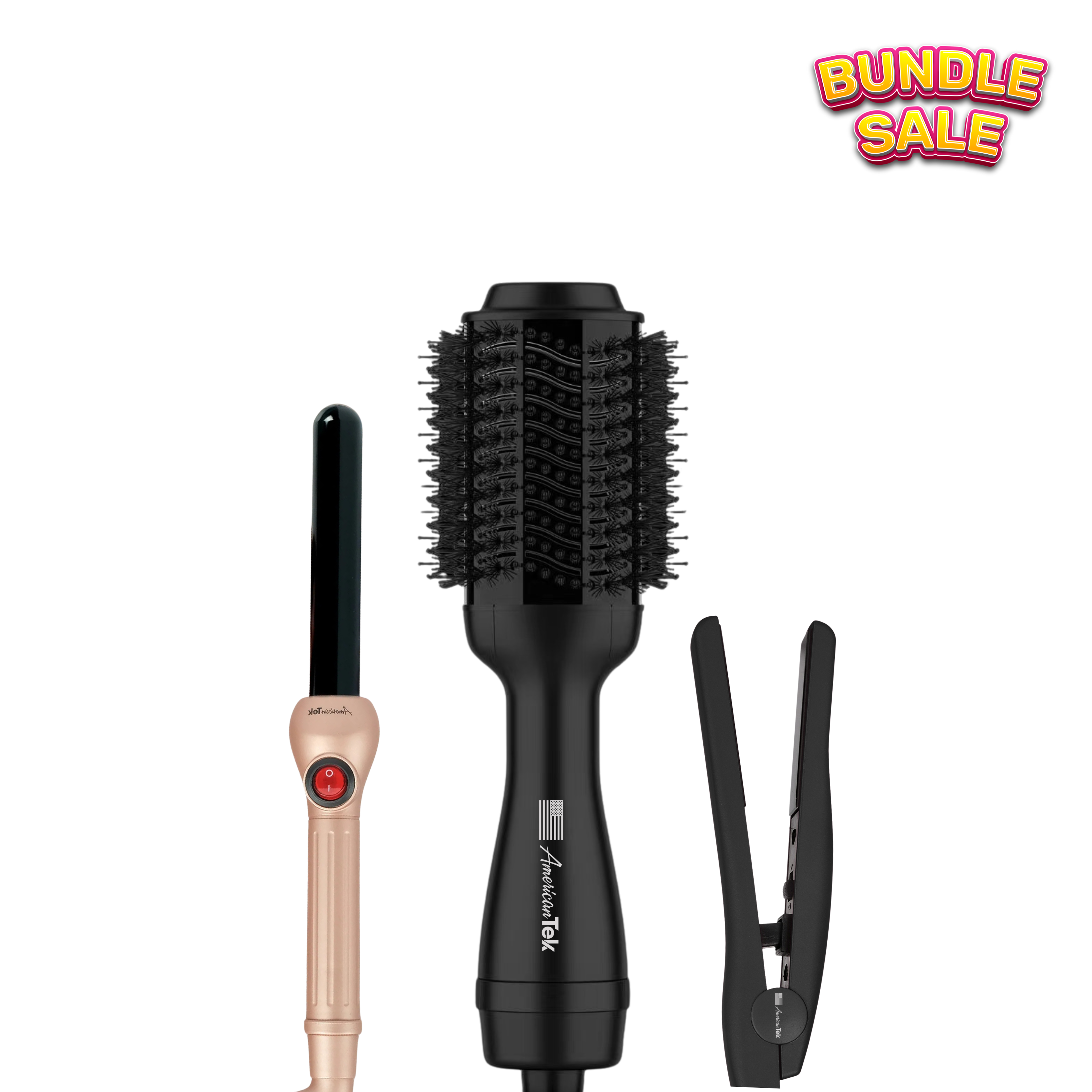 Meet the American Tek Power Style Trio—a high-performance bundle designed for fast, flawless styling at home or on the go. With the 3 in 1 Hair Dryer Brush, a precision Hair Curler, and a compact Mini Hair Straightener, this set gives you the freedom to dry, curl, smooth, and style any hair type with ease. Whether you want volume, waves, or sleek strands, this trio brings salon-level results right to your hands.
