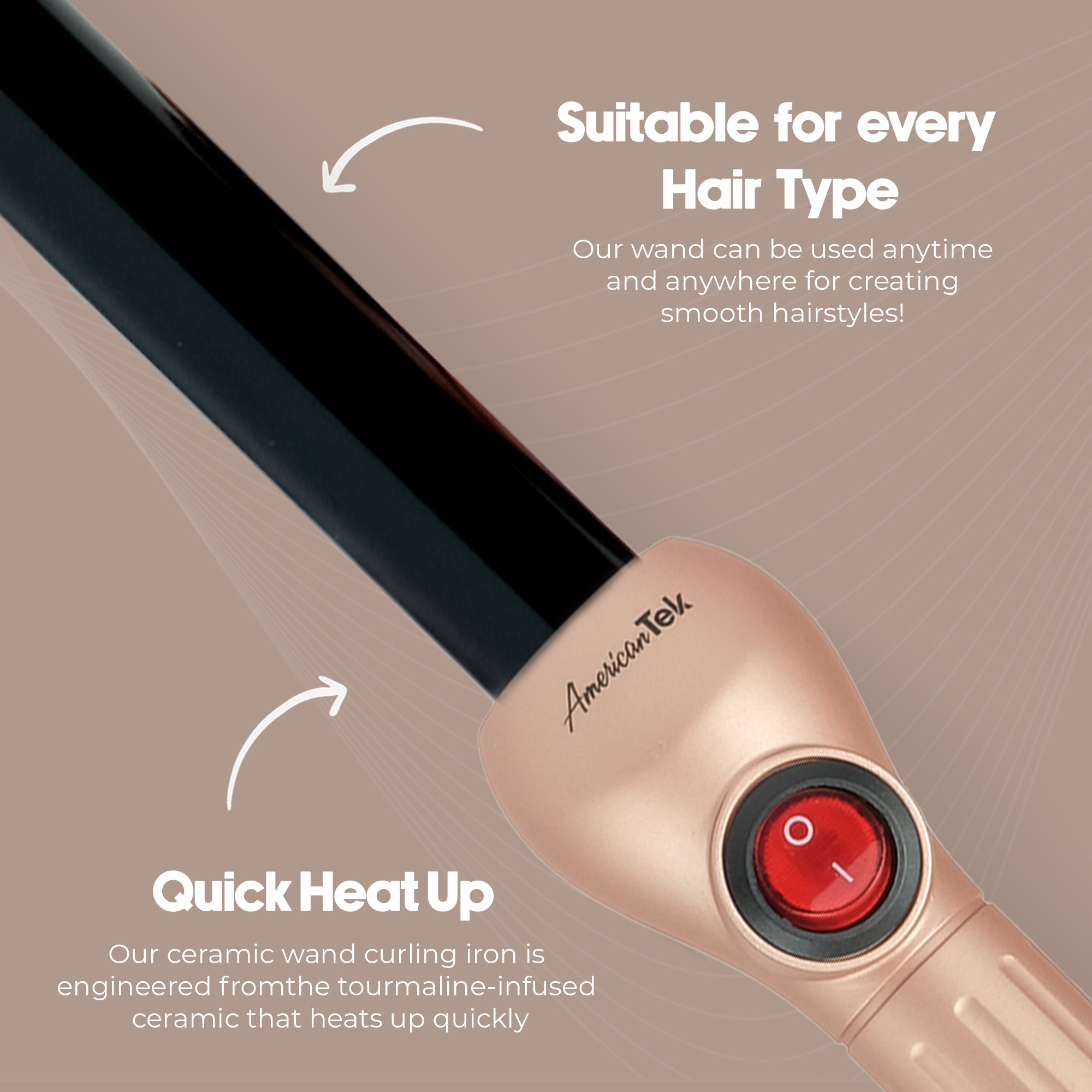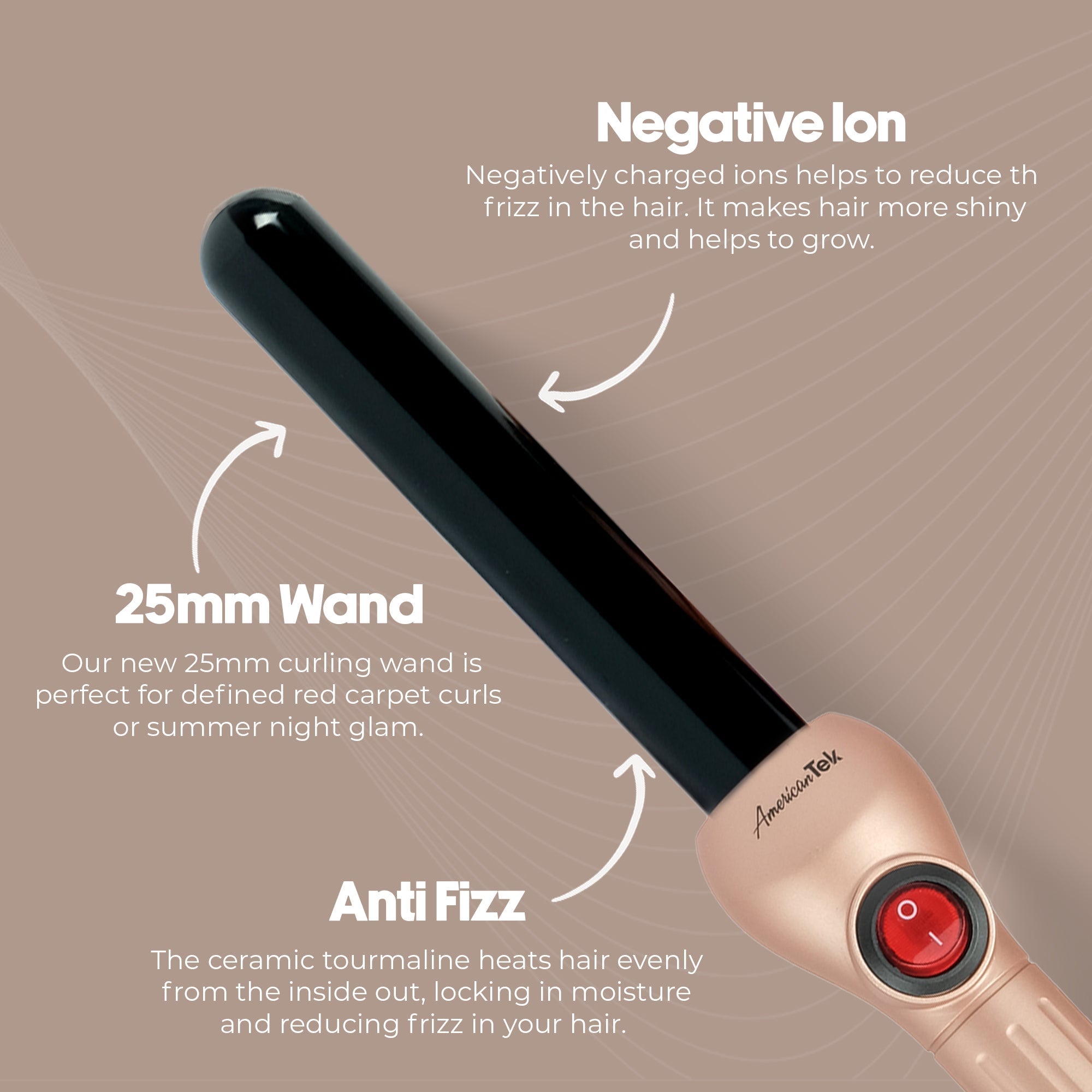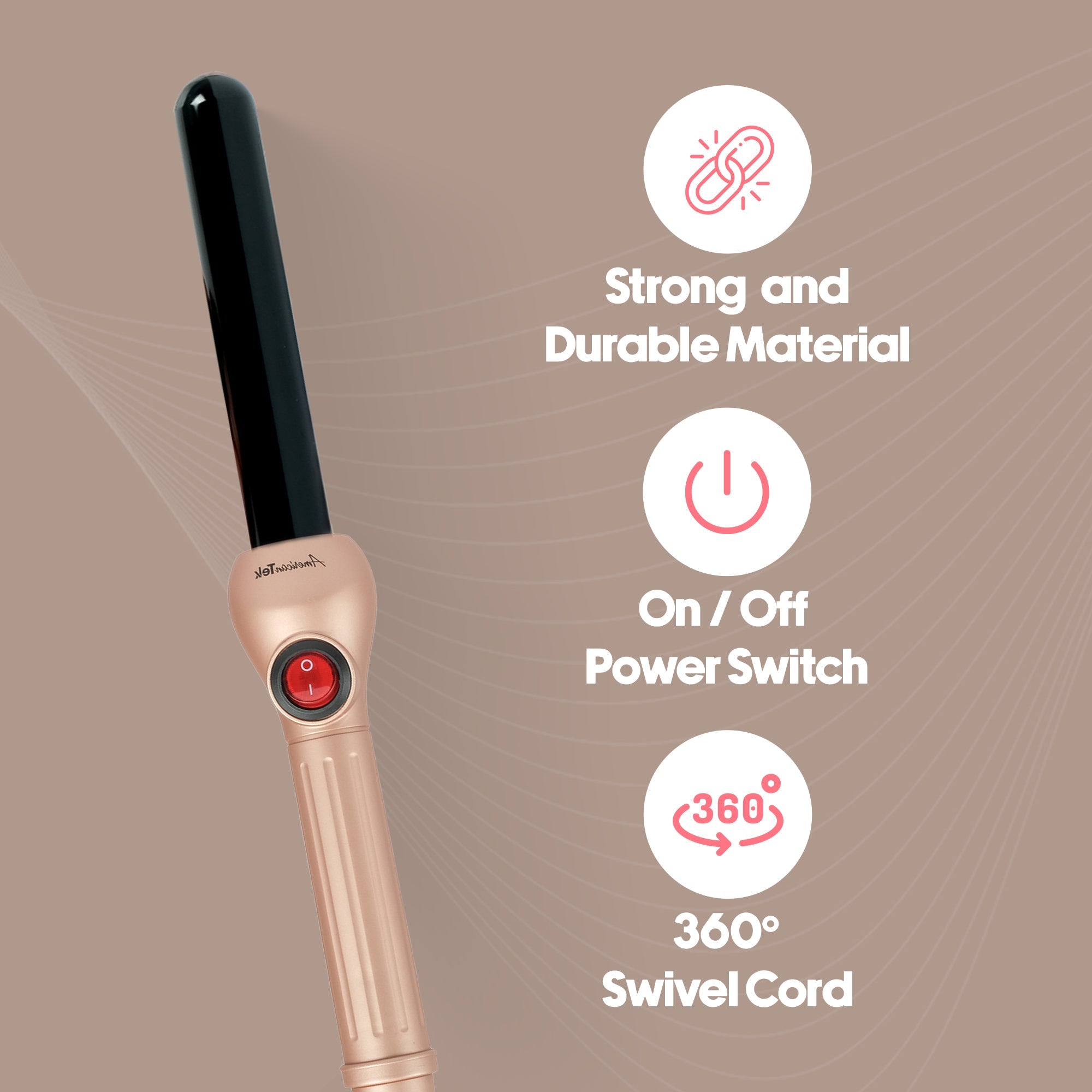 American Tek Hair Curler 25 MM - Rose Gold | Best Hair Curler, Hair Wand & Hair Tong in Dubai